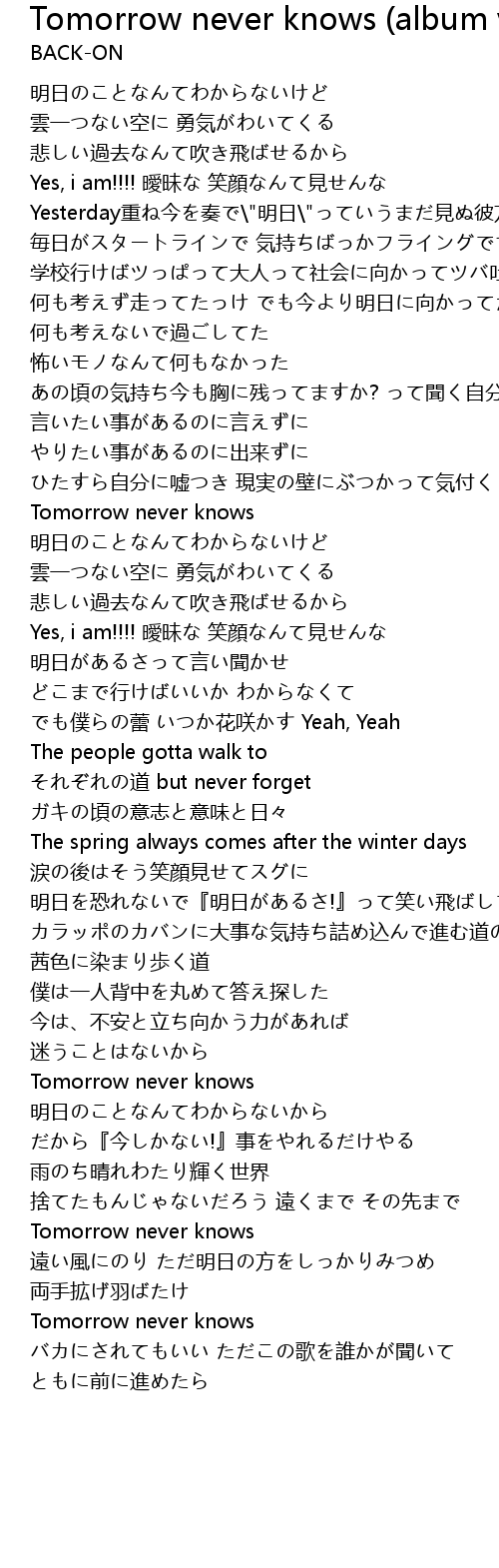 | Yesterday重ね今を奏で\"明日\"っていうまだ見ぬ彼方へ | |