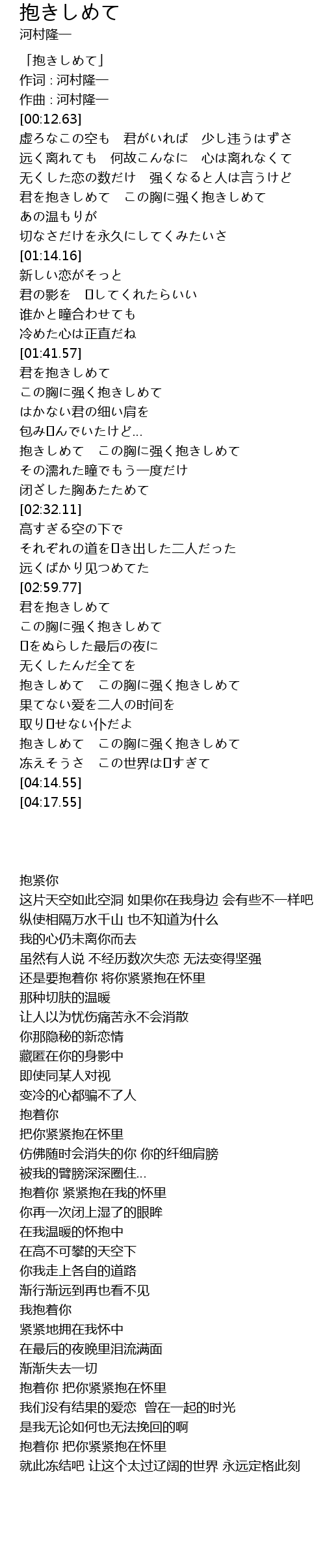 | [03:51.14] | 抱きしめて この胸に强く抱きしめて |