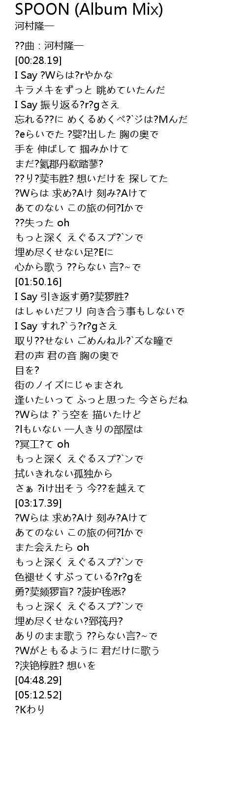 | [04:14.15] | もっと深く えぐるスプ?`ンで |