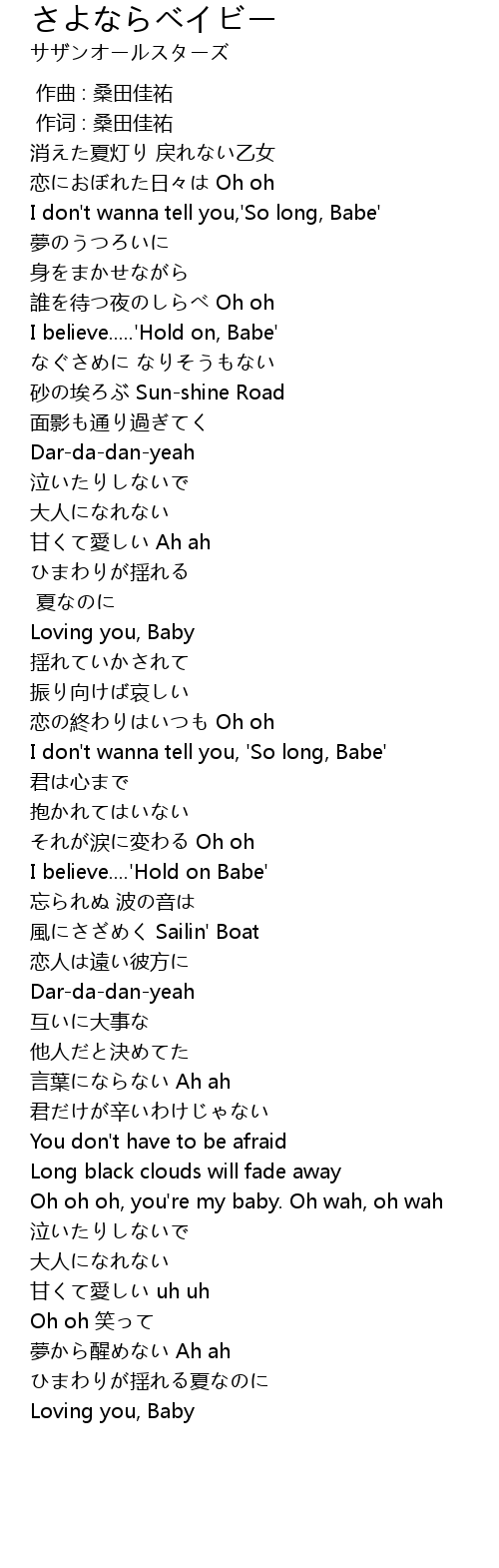 | [02:29.490] | I don't wanna tell you, 'So long, Babe' |