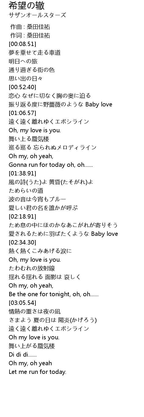 | [00:00.00] | 作曲 : 桑田佳祐 |