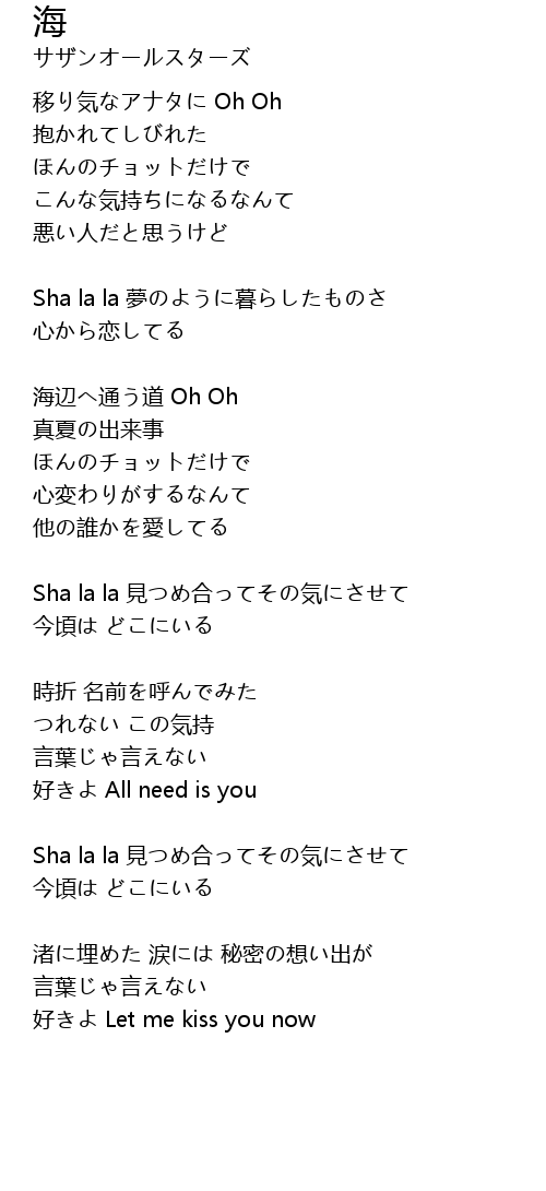 | 渚に埋めた 涙には 秘密の想い出が | |