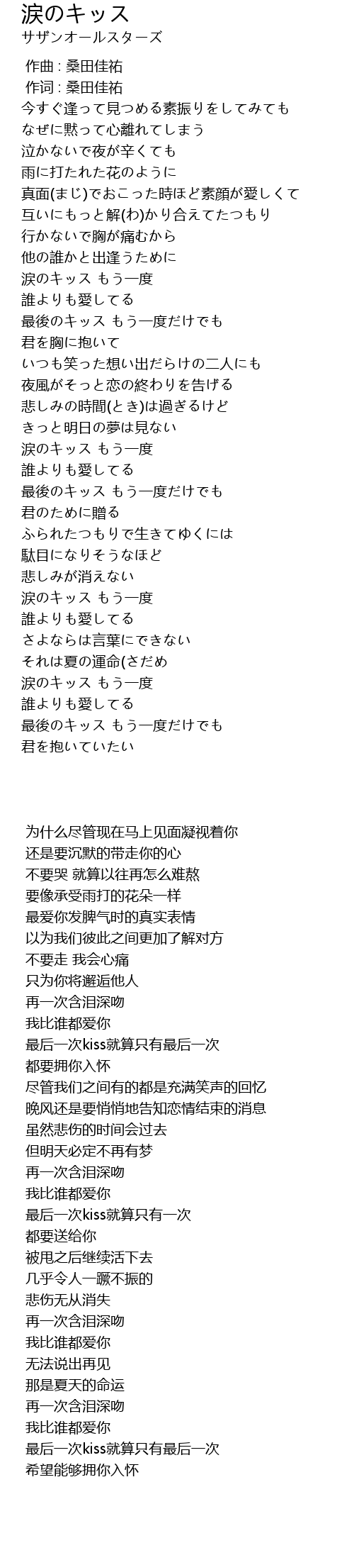 | [00:01.00] | 作词 : 桑田佳祐 |