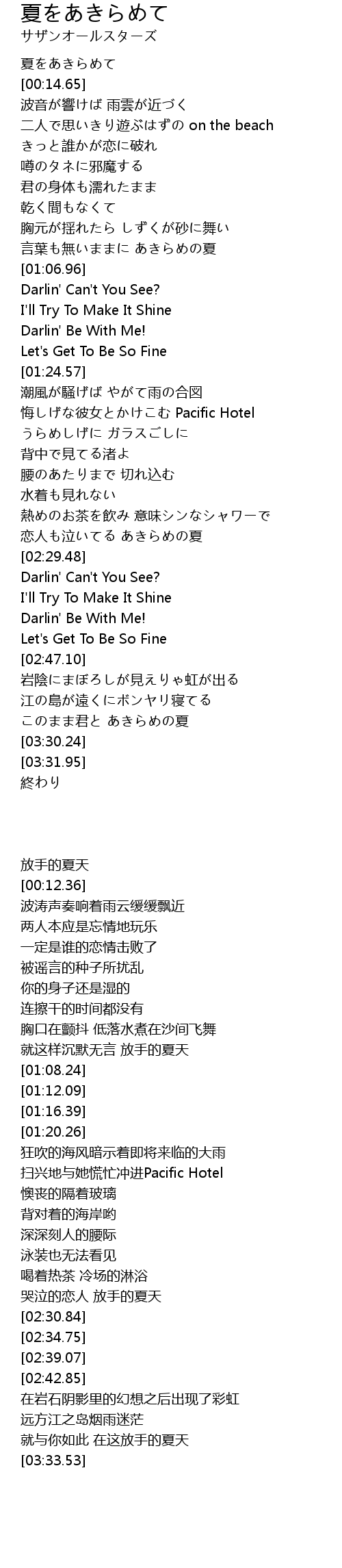 | [00:59.65] | 言葉も無いままに あきらめの夏 |