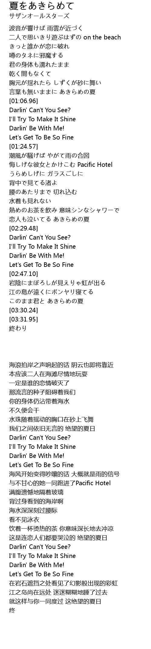 | [00:59.65] | 言葉も無いままに あきらめの夏 |