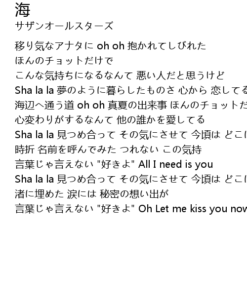| Sha la la 見つめ合って その気にさせて 今頃は どこにいる | |