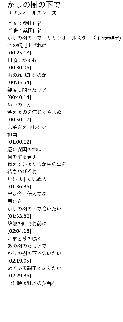| [00:00.04] | かしの樹の下で - サザンオールスターズ (南天群星) |