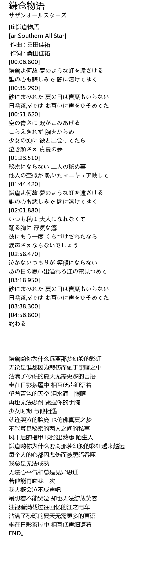 | [00:19.390] | 鎌倉よ何故 夢のような虹を遠ざける |