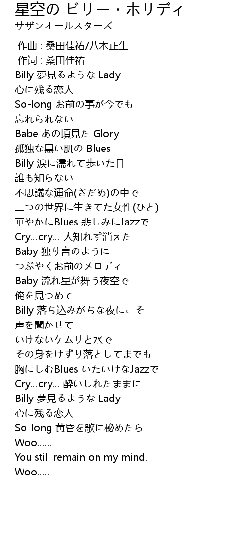 | [00:01.00] | 作词 : 桑田佳祐 |