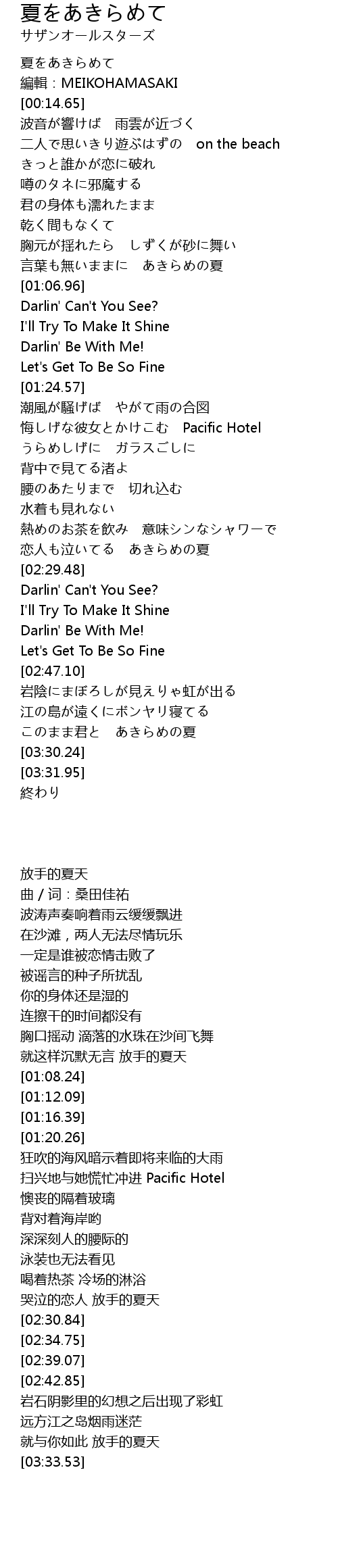 | [00:59.65] | 言葉も無いままに あきらめの夏 |