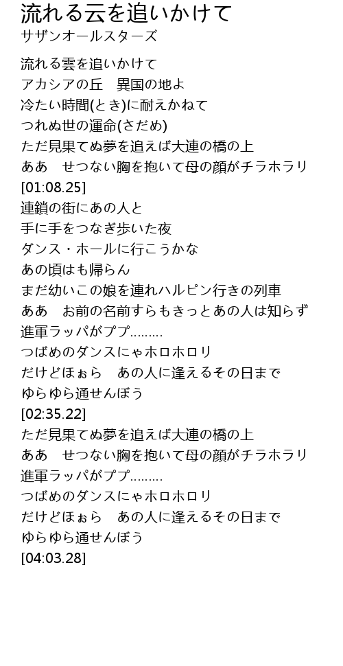 | [03:14.35] | ああ せつない胸を抱いて母の顔がチラホラリ |