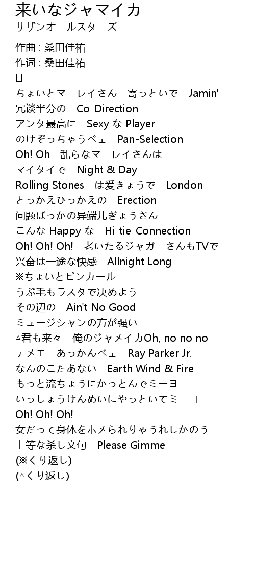 | 作词 : 桑田佳祐 | |