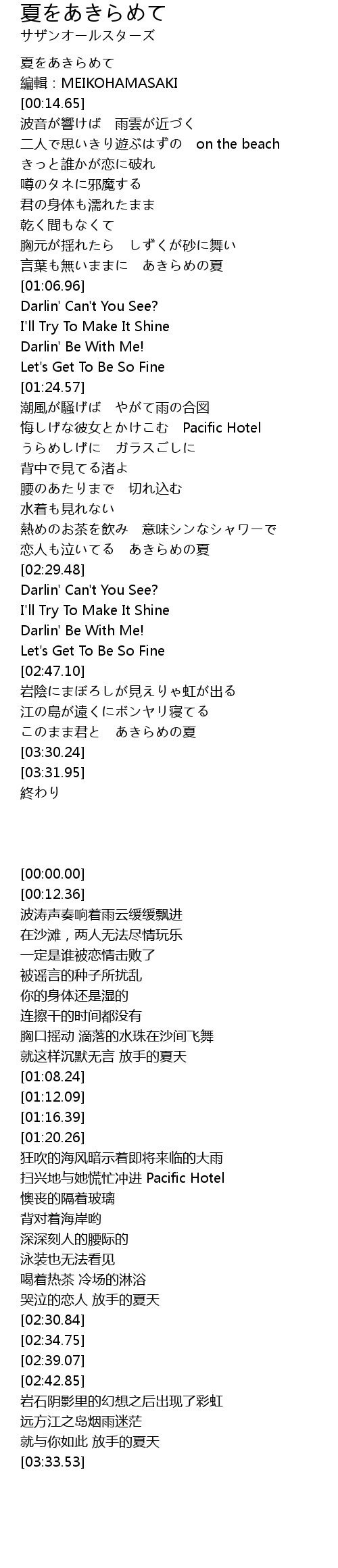 | [00:59.65] | 言葉も無いままに あきらめの夏 |