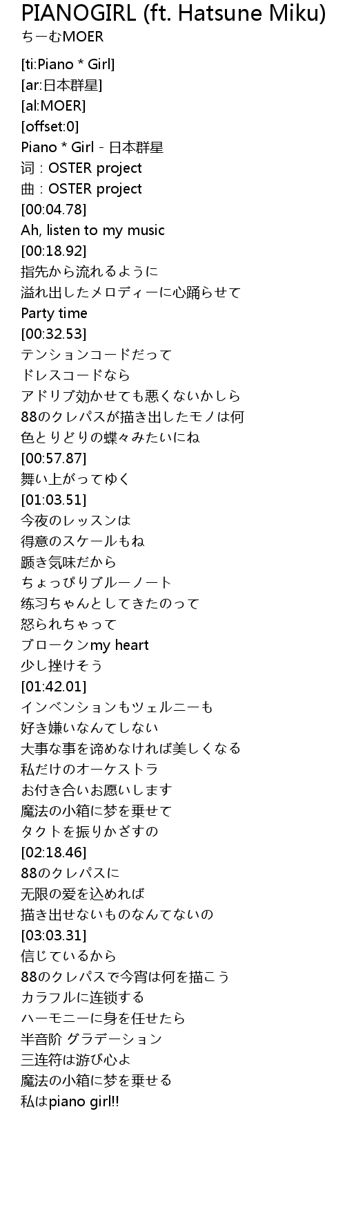 | [00:00.99] | Piano*Girl - 日本群星 |