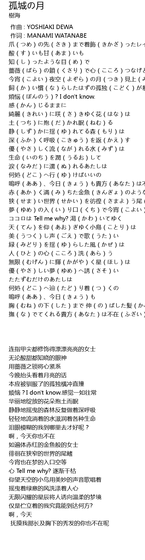 | [02:09.340] | ココロは Tell me why? 渇(かわ)いてゆく |