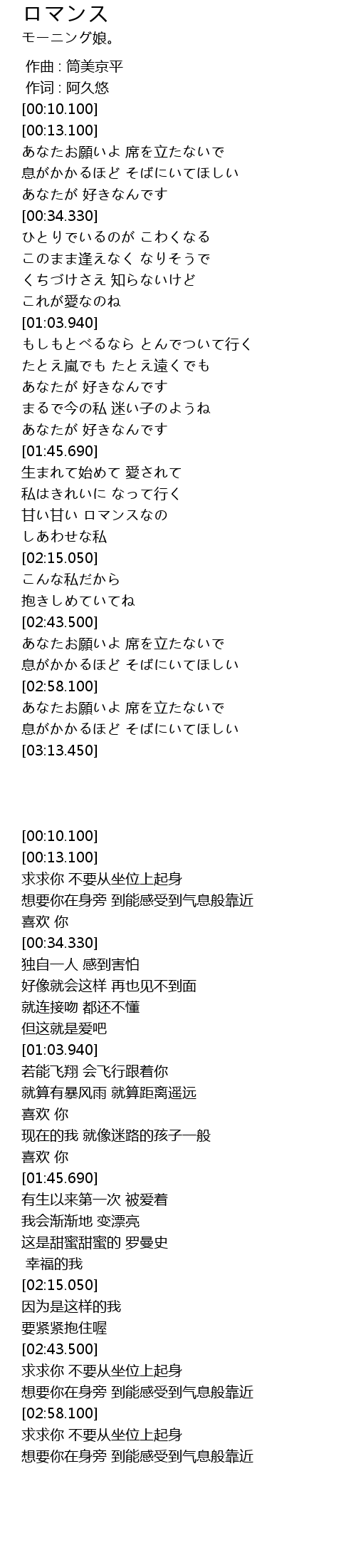 | [02:58.730] | あなたお願いよ 席を立たないで |