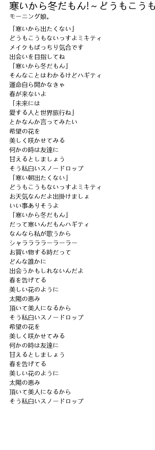 | Song | 寒いから冬だもん!~どうもこうもないっすよミキティ~ |