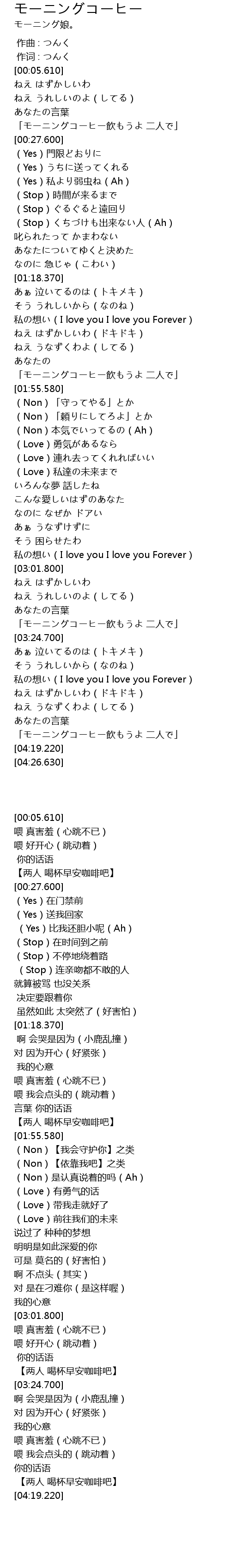 | [04:09.690] | 「モーニングコーヒー飲もうよ 二人で」 |