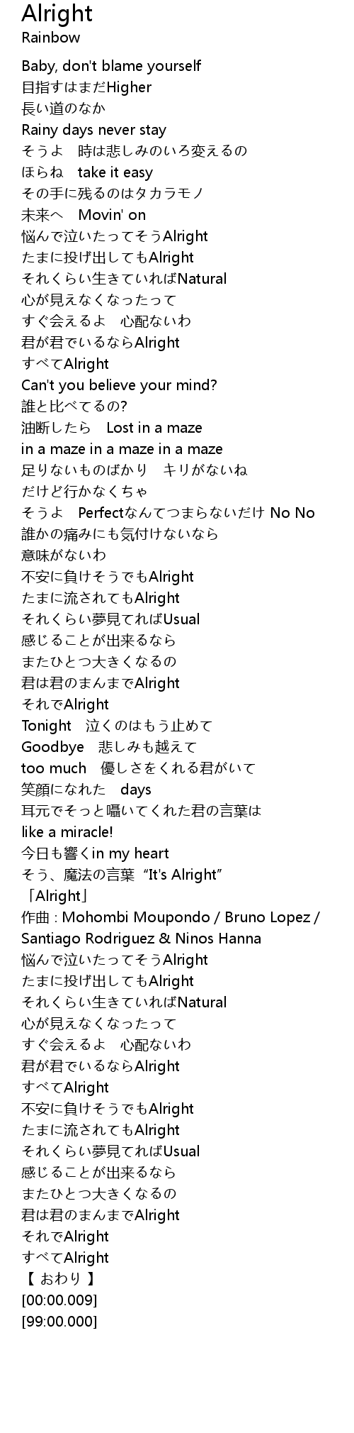 | [02:53.25] | そう、魔法の言葉“It's Alright” |