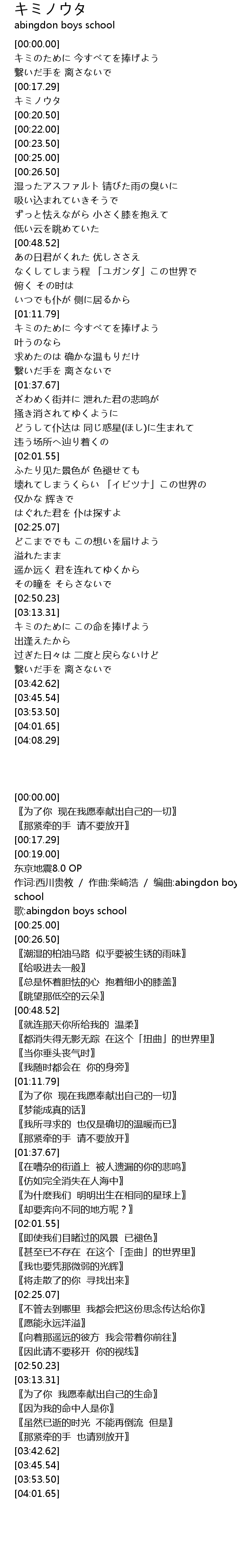 | [02:19.01] | はぐれた君を 仆は探すよ |