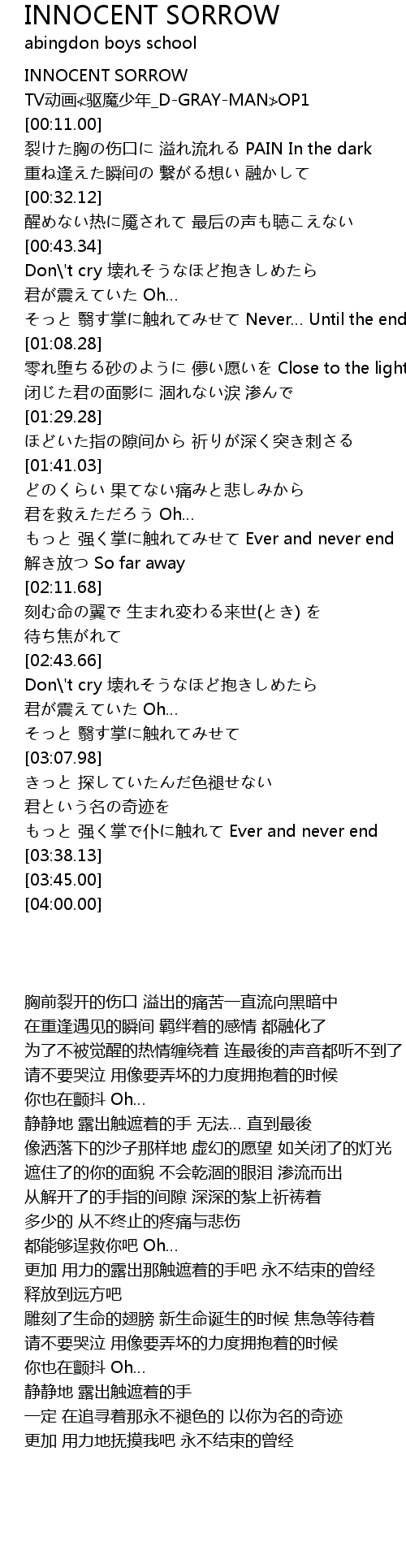 | [00:02.00] | INNOCENT SORROW |