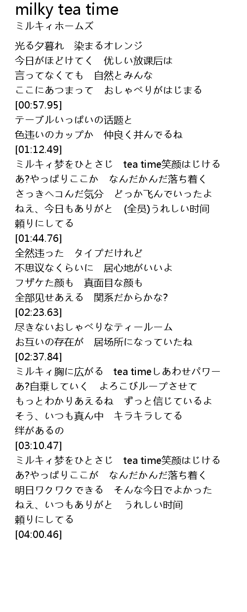 | [02:39.43] | ミルキィ胸に広がる tea timeしあわせパワー |