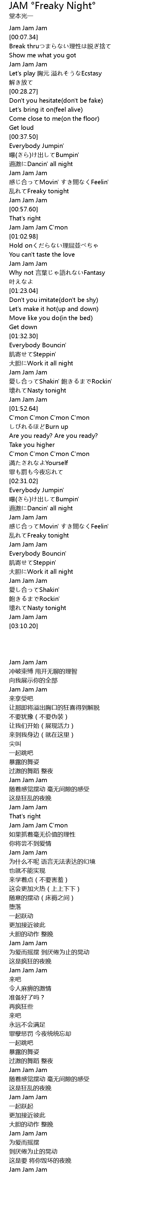 | [01:00.63] | Jam Jam Jam C'mon |