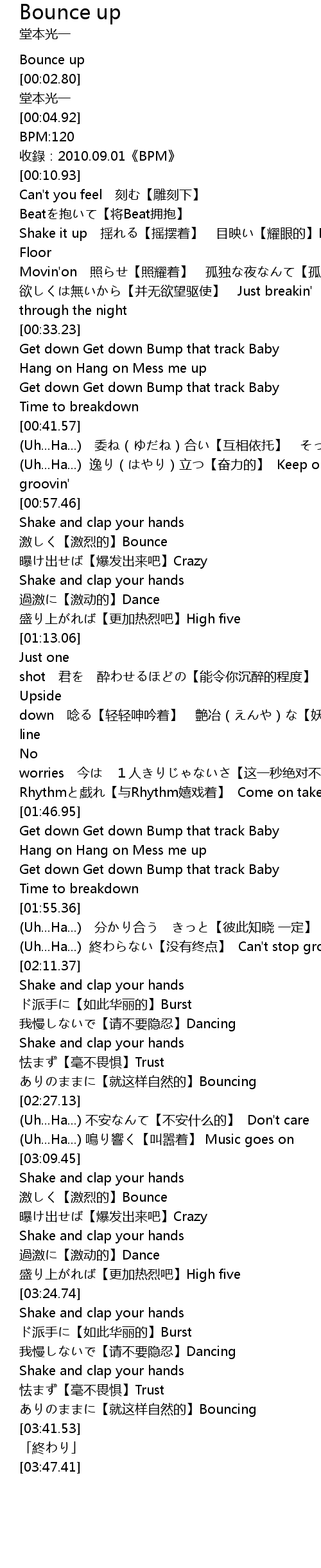| [03:11.56] | 激しく【激烈的】Bounce 曝け出せば【爆发出来吧】Crazy |