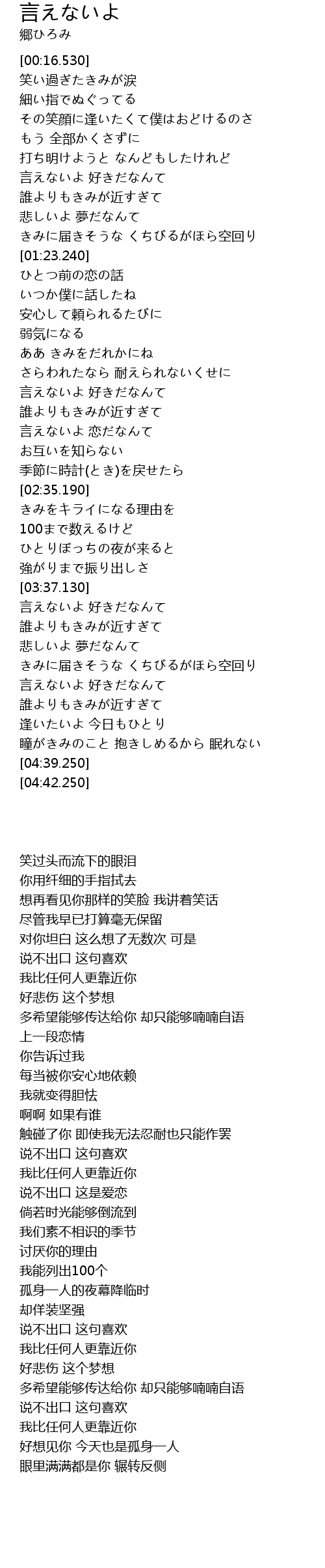 | [00:46.540] | 打ち明けようと なんどもしたけれど |