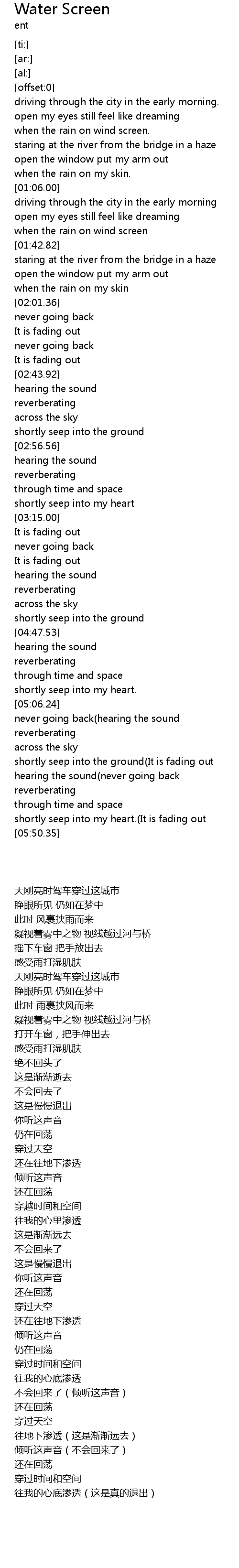 | [01:40.34] | when the rain on wind screen |
