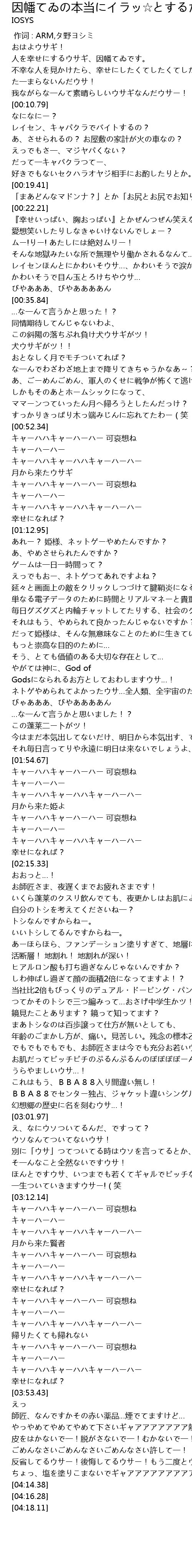 | [01:41.79] | ネトゲやめられてよかったウサ…全人類、全宇宙のためによかったウサ… |