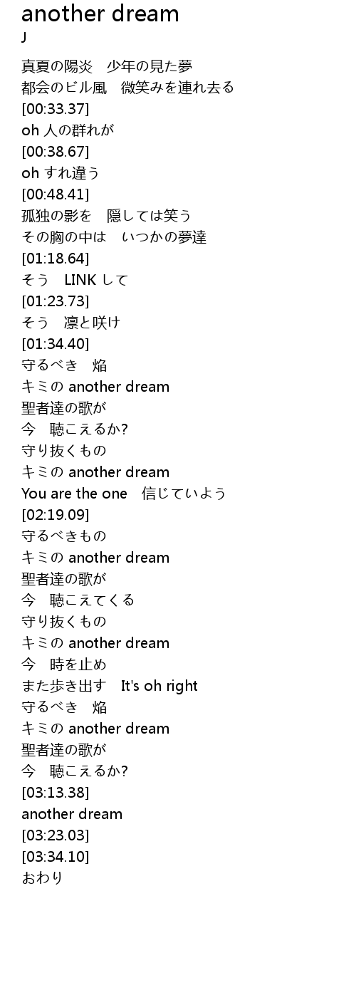| [00:16.64] | 真夏の陽炎 少年の見た夢 |