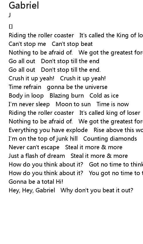 | Hey, Hey, Gabriel Why don' t you beat it out? |