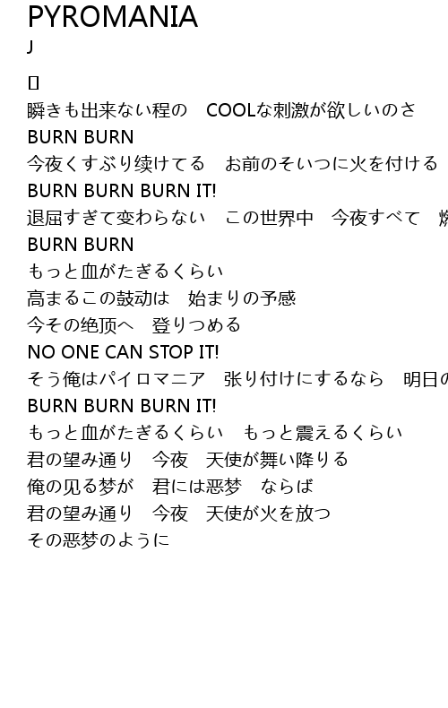 | 退屈すぎて变わらない この世界中 今夜すべて 燃やせ 燃やせ | |