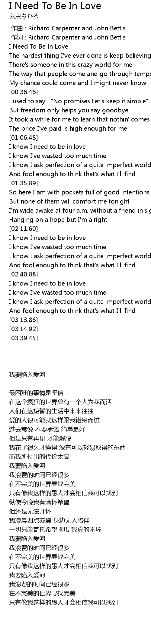 | [00:00.34] | I Need To Be In Love |