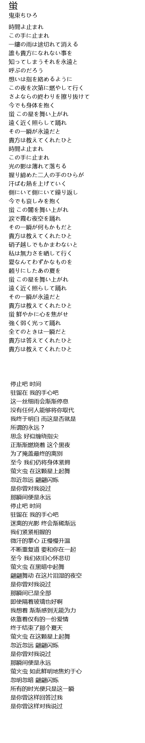 | [01:38.820] | 蛍 この星を舞い上がれ |