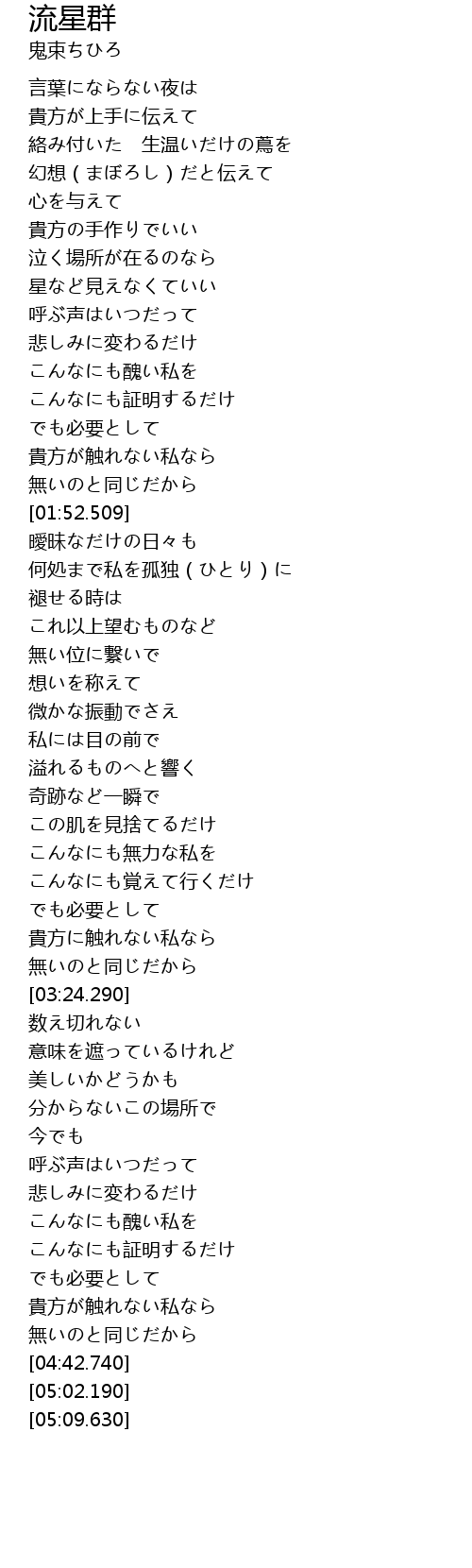 | [02:02.460] | 何処まで私を孤独(ひとり)に |
