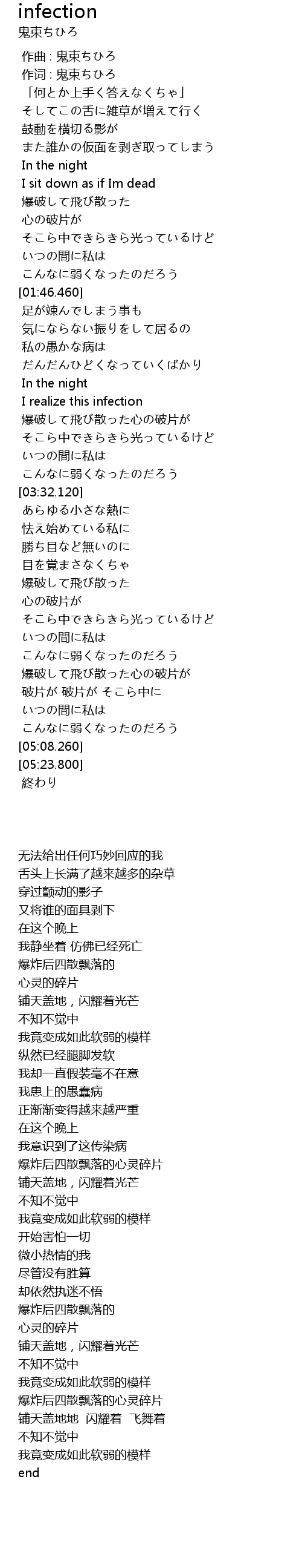 | [00:01.00] | 作词 : 鬼束ちひろ |