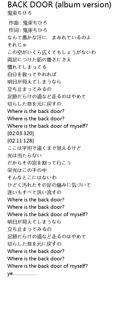 | [03:12.888] | Where is the back door of myself? |