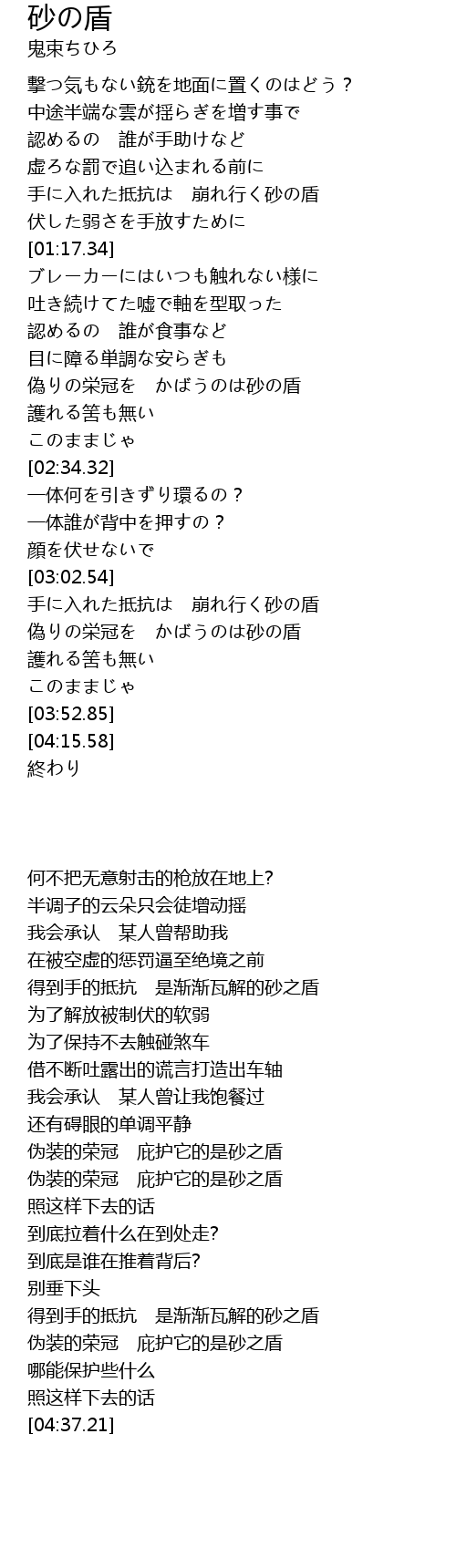 | [02:15.58] | 偽りの栄冠を かばうのは砂の盾 |