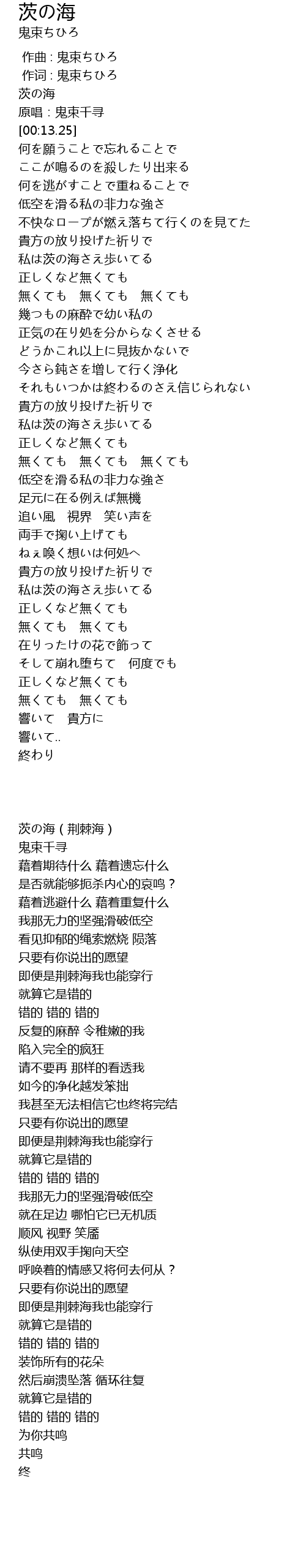 | [00:00.340] | 作词 : 鬼束ちひろ |