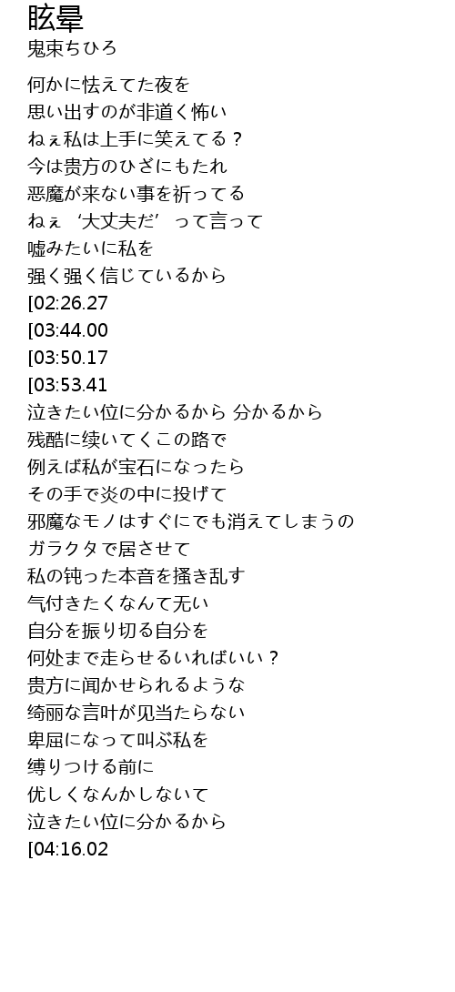 | [00:59.74] | ねぇ‘大丈夫だ’って言って |