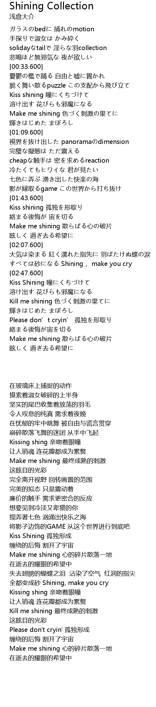 | [02:35.600] | すべては砂になる Shining, make you cry |