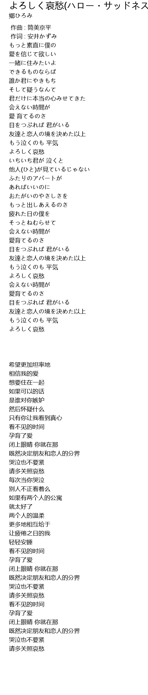| Song | よろしく哀愁(ハロー・サッドネス・ボサ・ヴァージョン) |