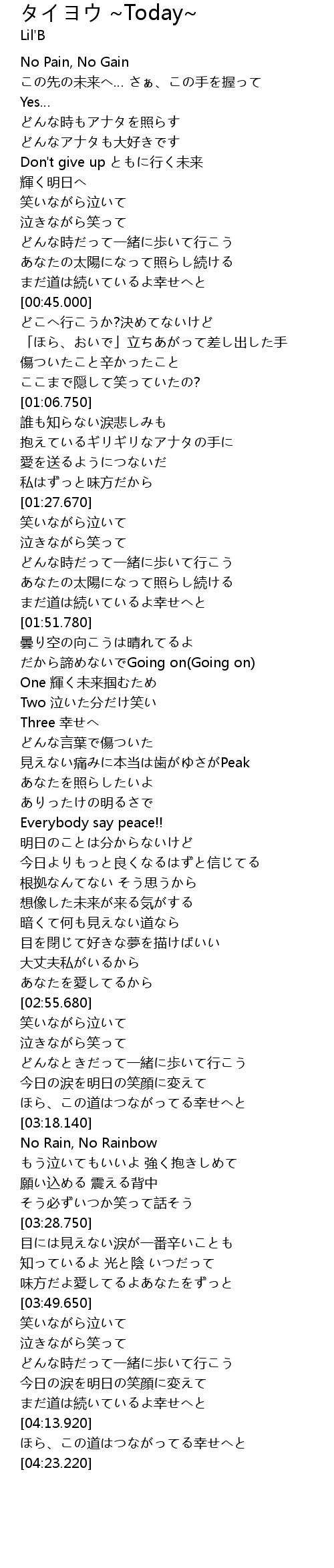 | [03:19.140] | No Rain, No Rainbow |
