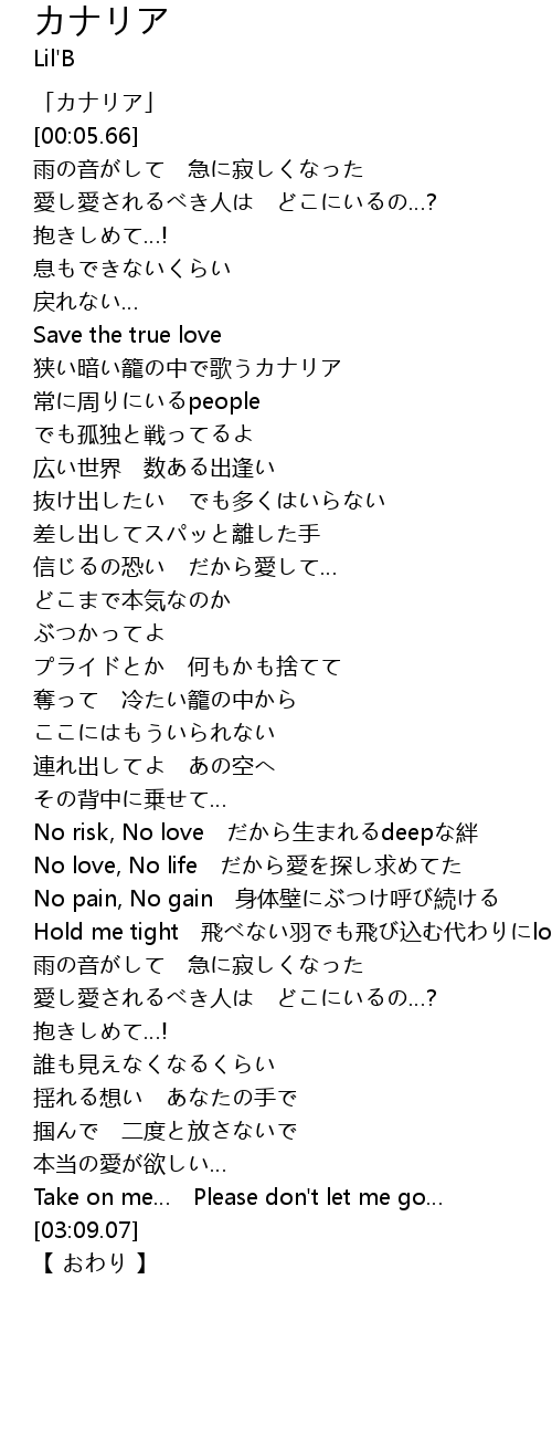| [00:01.66] | 「カナリア」 |