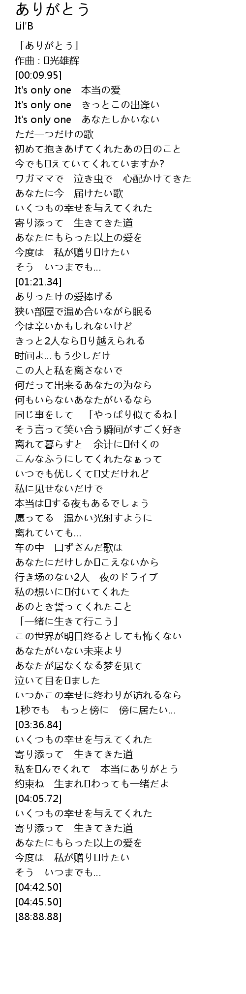 | [00:01.95] | 「ありがとう」 |