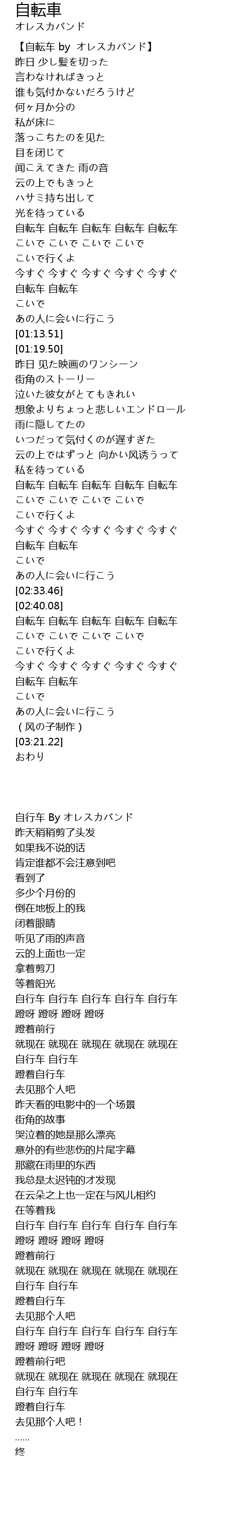 | [00:45.28] | 自転车 自転车 自転车 自転车 自転车 |