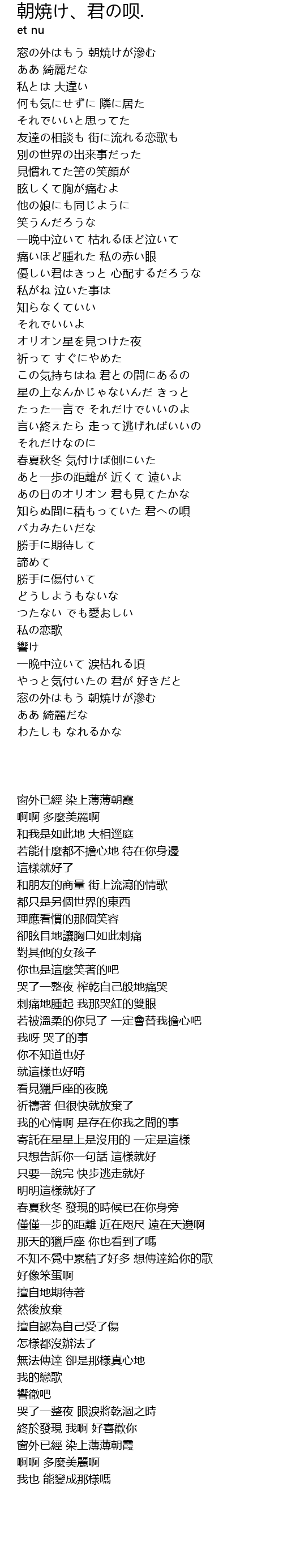| [00:00.00] | 窓の外はもう 朝焼けが滲む |