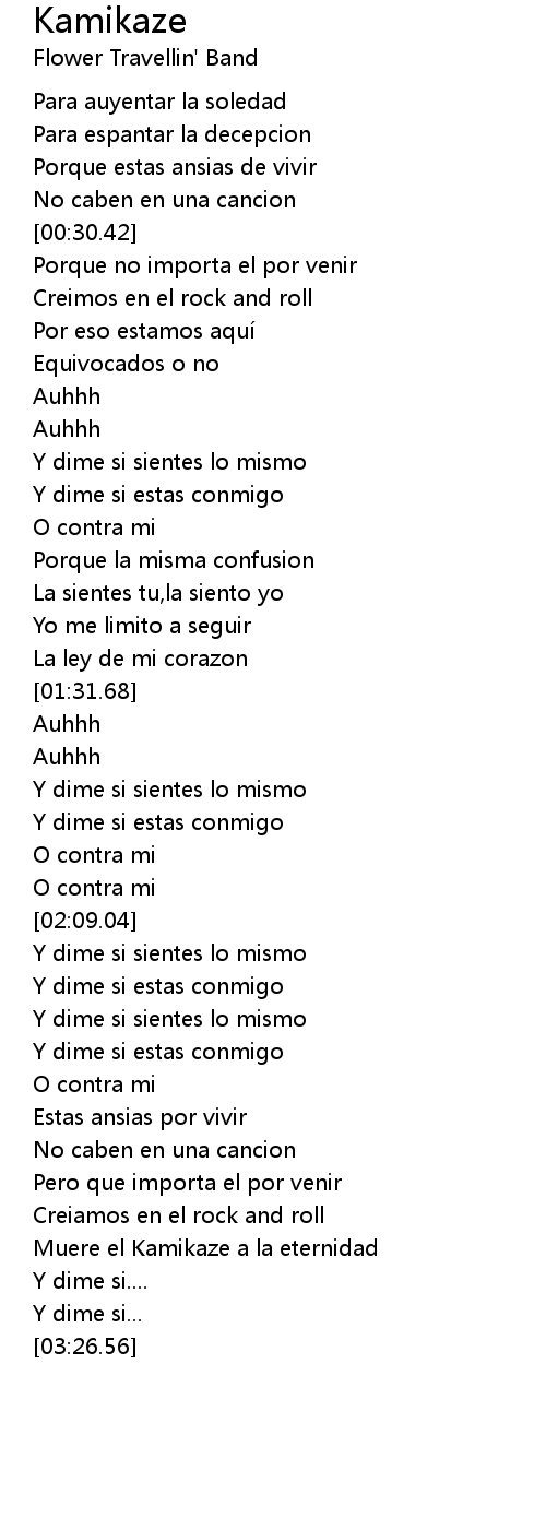 | [03:04.70] | Muere el Kamikaze a la eternidad |